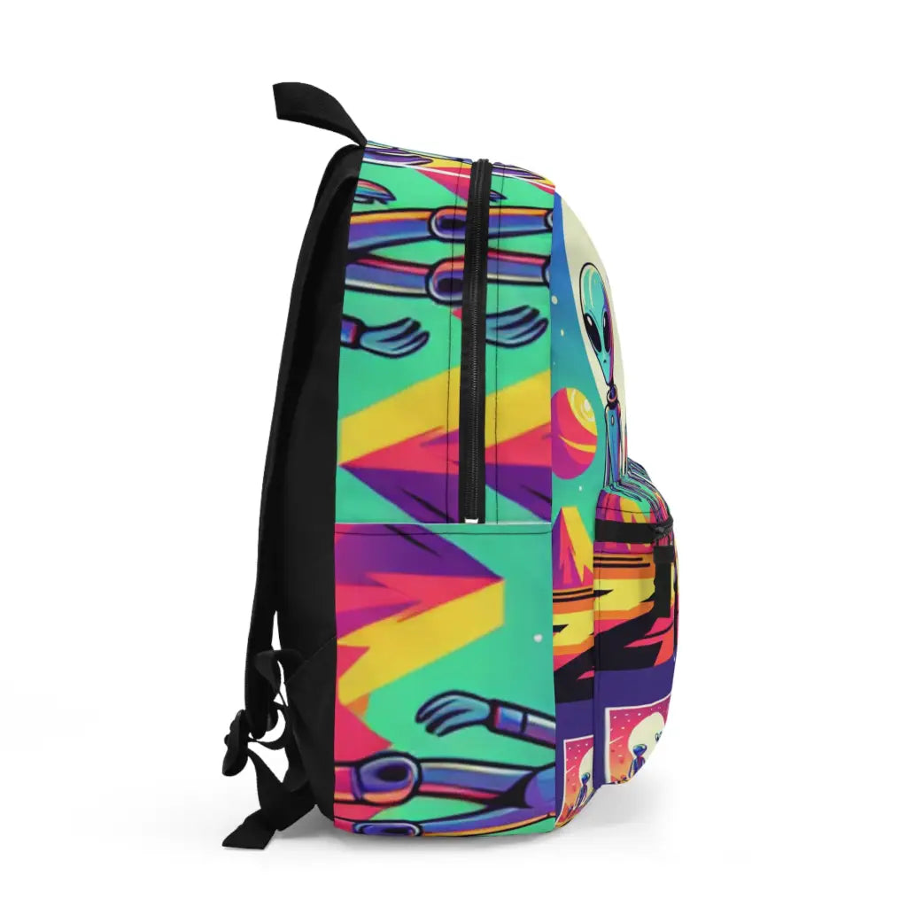 A vivid mosaic of whimsical aliens, each vignette explores diverse emotions and scenarios amidst a backdrop of cosmic wonders, engaging viewers with their expressive, oversized eyes and the charming, otherworldly creatures that accompany them. Introducing the ultimate backpack for fashion-forward adventurers! Our backpack boasts a striking textile design that will make a statement wherever you go. With its durable construction and spacious compartments, it is perfect for carrying all your essentials. Get ready to turn heads and stay organized with our backpack. #textiledesign #backpack #fashionforward #adventure #durable #spacious #statementpiece #organized #essentials #travel #explore