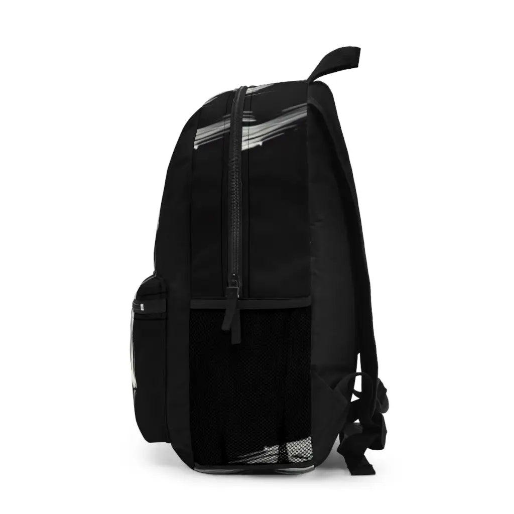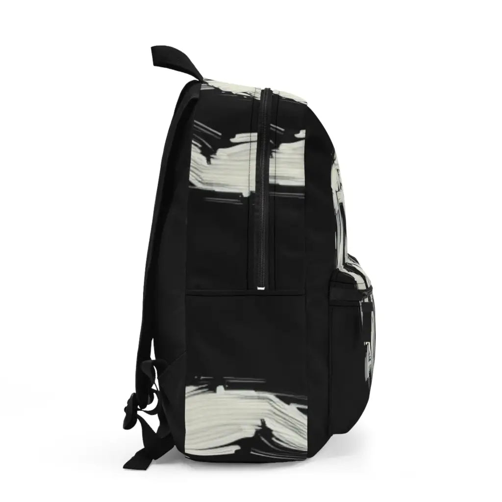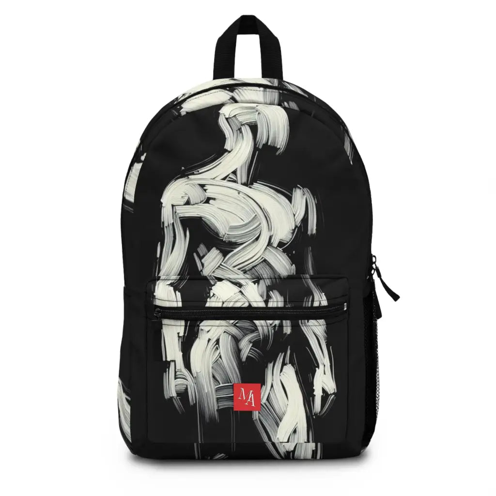 A luminous figure composed of dynamic, swirling brushstrokes stands against a pitch-black background, embodying movement and energy. The stark contrast highlights its ethereal and abstract nature, evoking a sense of mystery and creativity. Introducing the ultimate backpack for fashion-forward adventurers! Our backpack boasts a striking textile design that will make a statement wherever you go. With its durable construction and spacious compartments, it is perfect for carrying all your essentials. Get ready to turn heads and stay organized with our backpack. #textiledesign #backpack #fashionforward #adventure #durable #spacious #statementpiece #organized #essentials #travel #explore