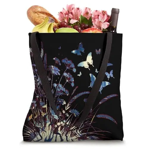 Floral Twilight Meadow: Flight of the Evening Butterflies Tote Bag