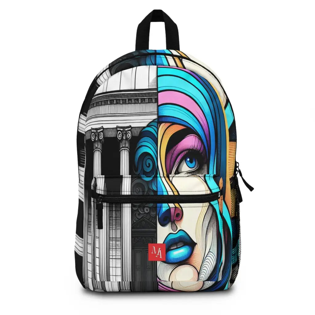 A striking fusion of classical and contemporary, this image juxtaposes a grand, columned building with a vivid, abstract face. The swirling pastel hues navigate between realism and surrealism, intertwining tradition with modernity. Introducing the ultimate backpack for fashion-forward adventurers! Our backpack boasts a striking textile design that will make a statement wherever you go. With its durable construction and spacious compartments, it is perfect for carrying all your essentials. Get ready to turn heads and stay organized with our backpack. #textiledesign #backpack #fashionforward #adventure #durable #spacious #statementpiece #organized #essentials #travel #explore