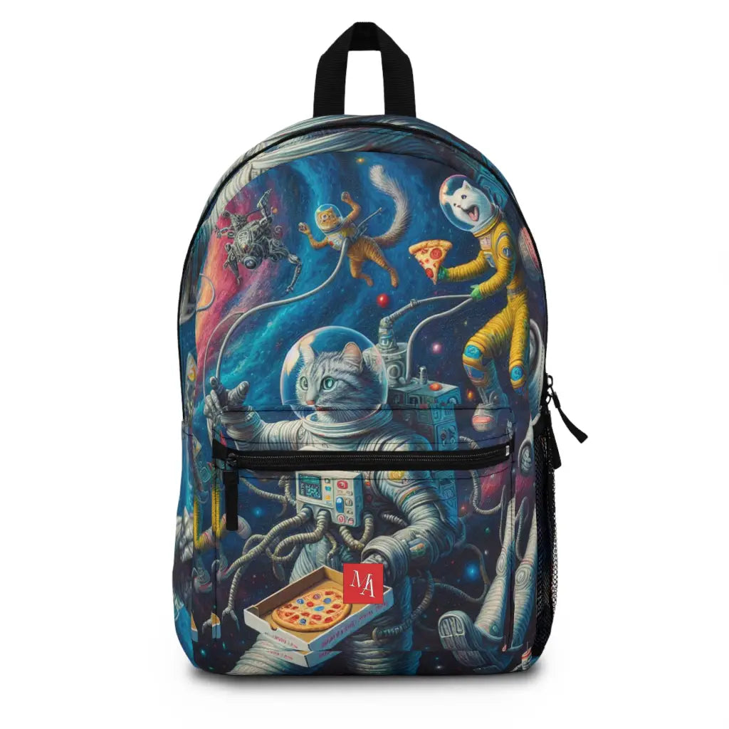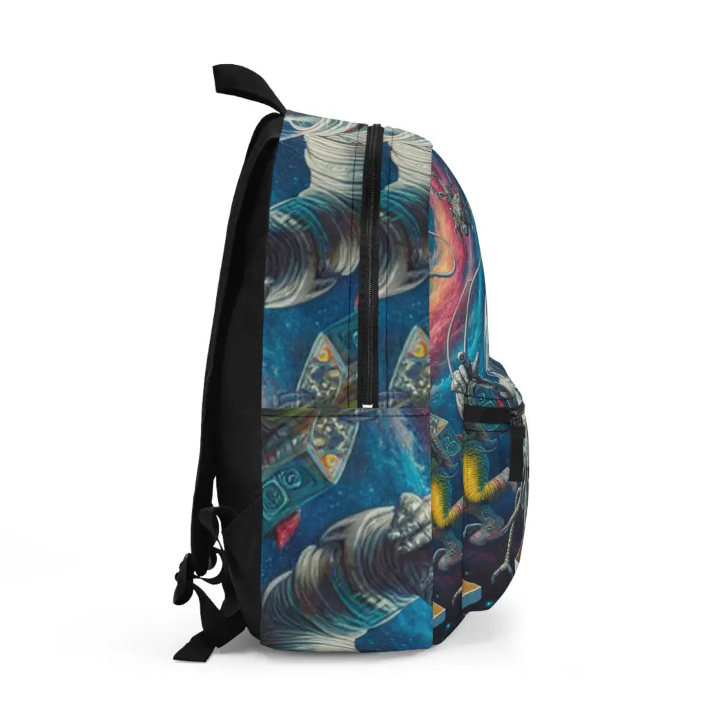 Whimsical astronauts—including cats and dogs—explore a swirling cosmic vortex. Each character showcases distinct, vibrant spacesuits and expressions, adding charm and humor to this interstellar adventure. The psychedelic background enhances the dynamic scene, blending creativity with a playful narrative. Introducing the ultimate backpack for fashion-forward adventurers! Our backpack boasts a striking textile design that will make a statement wherever you go. With its durable construction and spacious compartments, it is perfect for carrying all your essentials. Get ready to turn heads and stay organized with our backpack. #textiledesign #backpack #fashionforward #adventure #durable #spacious #statementpiece #organized #essentials #travel #explore