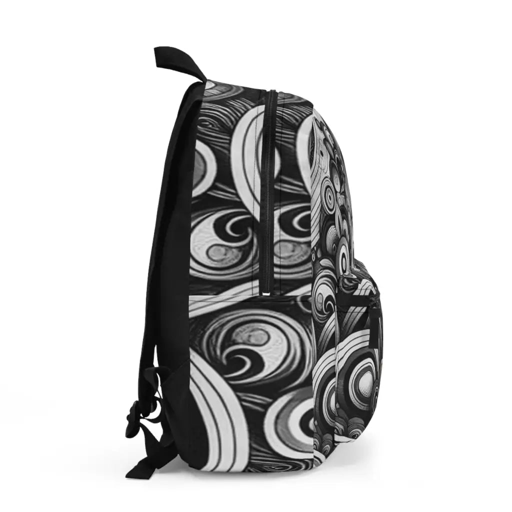 This abstract design features intricate, concentric circles in vibrant shades of red, black, and cream. The interplay of patterns and textures creates a mesmerizing, mechanical-organic fusion, evoking a sense of movement and depth. Introducing the ultimate backpack for fashion-forward adventurers! Our backpack boasts a striking textile design that will make a statement wherever you go. With its durable construction and spacious compartments, it is perfect for carrying all your essentials. Get ready to turn heads and stay organized with our backpack. #textiledesign #backpack #fashionforward #adventure #durable #spacious #statementpiece #organized #essentials #travel #explore