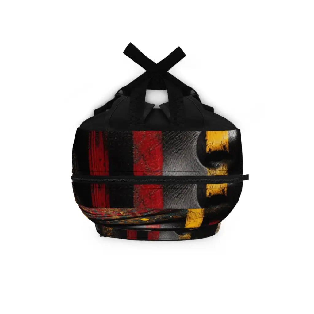 This artwork presents a captivating face, emerging from a grunge background with a striking red and yellow color palette. The distressed texture and intense gaze combine to create a powerful and evocative visual statement. Introducing the ultimate backpack for fashion-forward adventurers! Our backpack boasts a striking textile design that will make a statement wherever you go. With its durable construction and spacious compartments, it is perfect for carrying all your essentials. Get ready to turn heads and stay organized with our backpack. #textiledesign #backpack #fashionforward #adventure #durable #spacious #statementpiece #organized #essentials #travel #explore