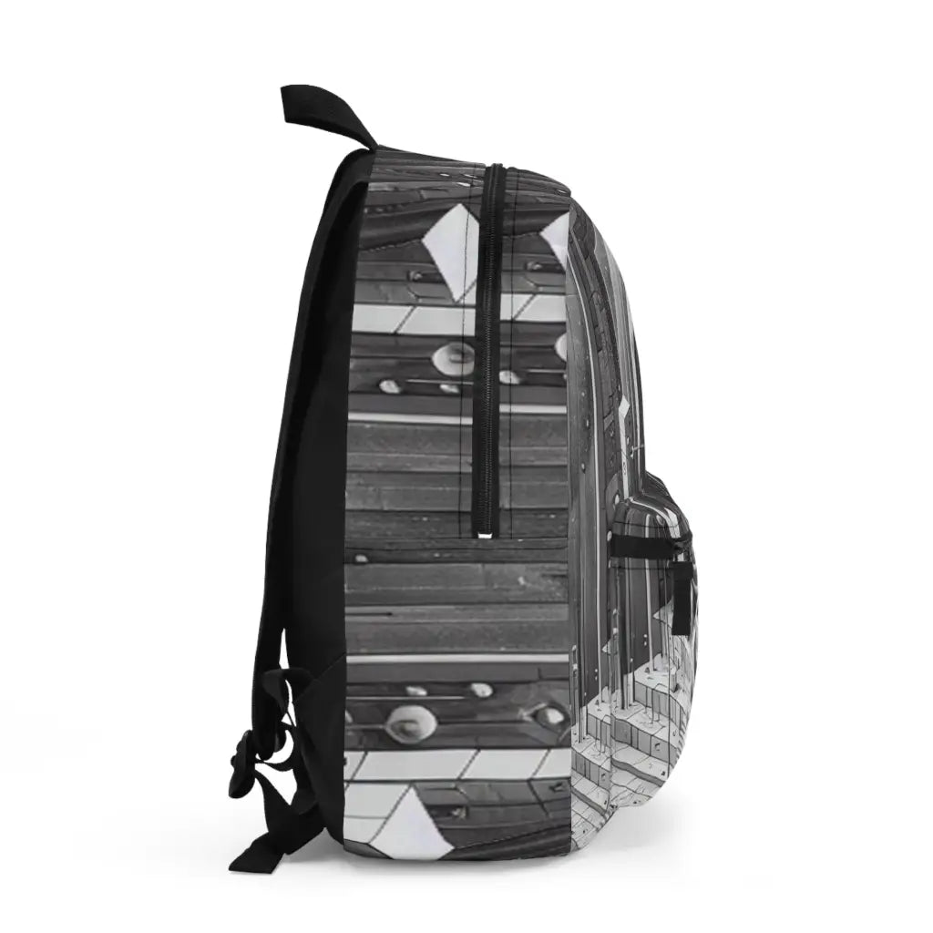 An intricate geometric masterpiece, this grayscale artwork blends cubes, spheres, and concentric patterns, creating a multidimensional labyrinth. Its precision and depth evoke a sense of cosmic architecture, balancing order and chaos in a visually stunning symphony of shapes. Introducing the ultimate backpack for fashion-forward adventurers! Our backpack boasts a striking textile design that will make a statement wherever you go. With its durable construction and spacious compartments, it is perfect for carrying all your essentials. Get ready to turn heads and stay organized with our backpack. #textiledesign #backpack #fashionforward #adventure #durable #spacious #statementpiece #organized #essentials #travel #explore