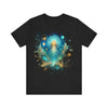 A surreal cityscape merges with an underwater world, where glowing, ethereal jellyfish float amidst ornate, luminescent buildings. The vivid colors and celestial bodies create a dreamlike atmosphere, blending fantasy and reality.. This classic unisex jersey short sleeve tee fits like a well-loved favorite. Soft cotton and quality print make users fall in love with it over and over again. These t-shirts have-ribbed knit collars to bolster shaping. The shoulders are tapered for a better fit over time. Dual side seams hold the garment's shape for longer.