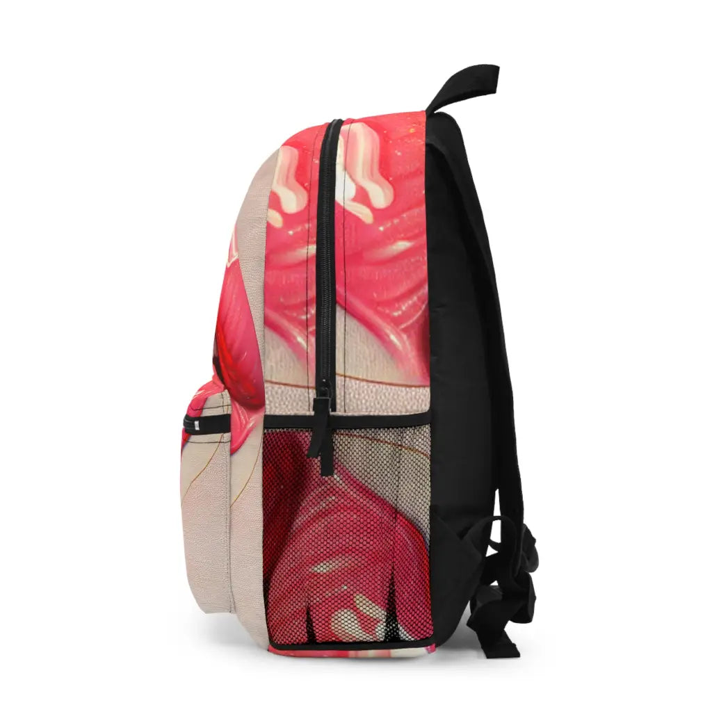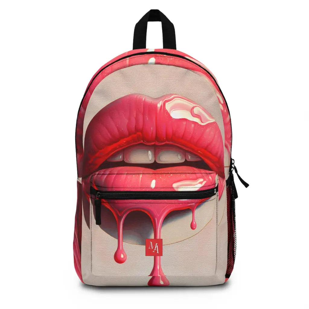 A pair of glossy, pink lips seemingly made of dripping paint create a surreal, dynamic illusion against a minimalistic backdrop, blending hyper-realism with abstract art for a visually striking effect. Introducing the ultimate backpack for fashion-forward adventurers! Our backpack boasts a striking textile design that will make a statement wherever you go. With its durable construction and spacious compartments, it is perfect for carrying all your essentials. Get ready to turn heads and stay organized with our backpack. #textiledesign #backpack #fashionforward #adventure #durable #spacious #statementpiece #organized #essentials #travel #explore