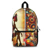 A vibrant silhouette of a seated figure, their form adorned with swirling circles, blends into a background of warm, fiery hues. Bold, circular patterns create movement and depth, transforming the scene into a dynamic interplay of color and form. Introducing the ultimate backpack for fashion-forward adventurers! Our backpack boasts a striking textile design that will make a statement wherever you go. With its durable construction and spacious compartments, it is perfect for carrying all your essentials. Get ready to turn heads and stay organized with our backpack. #textiledesign #backpack #fashionforward #adventure #durable #spacious #statementpiece #organized #essentials #travel #explore