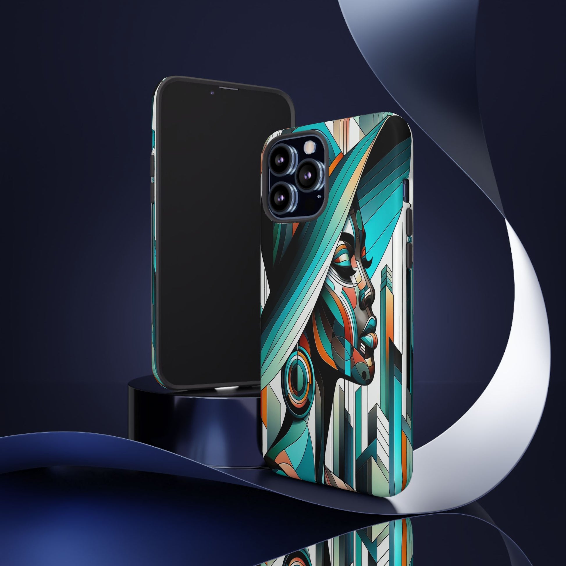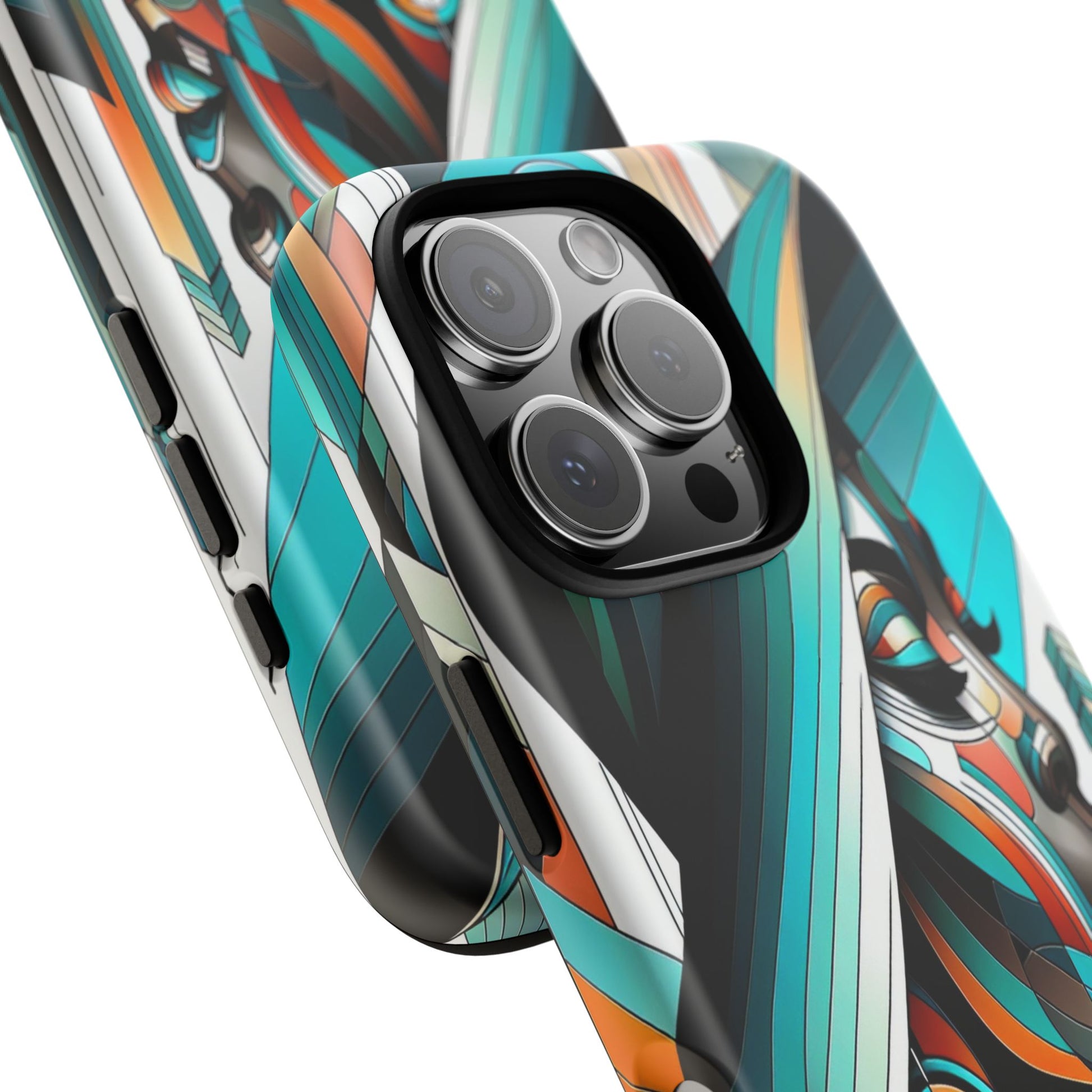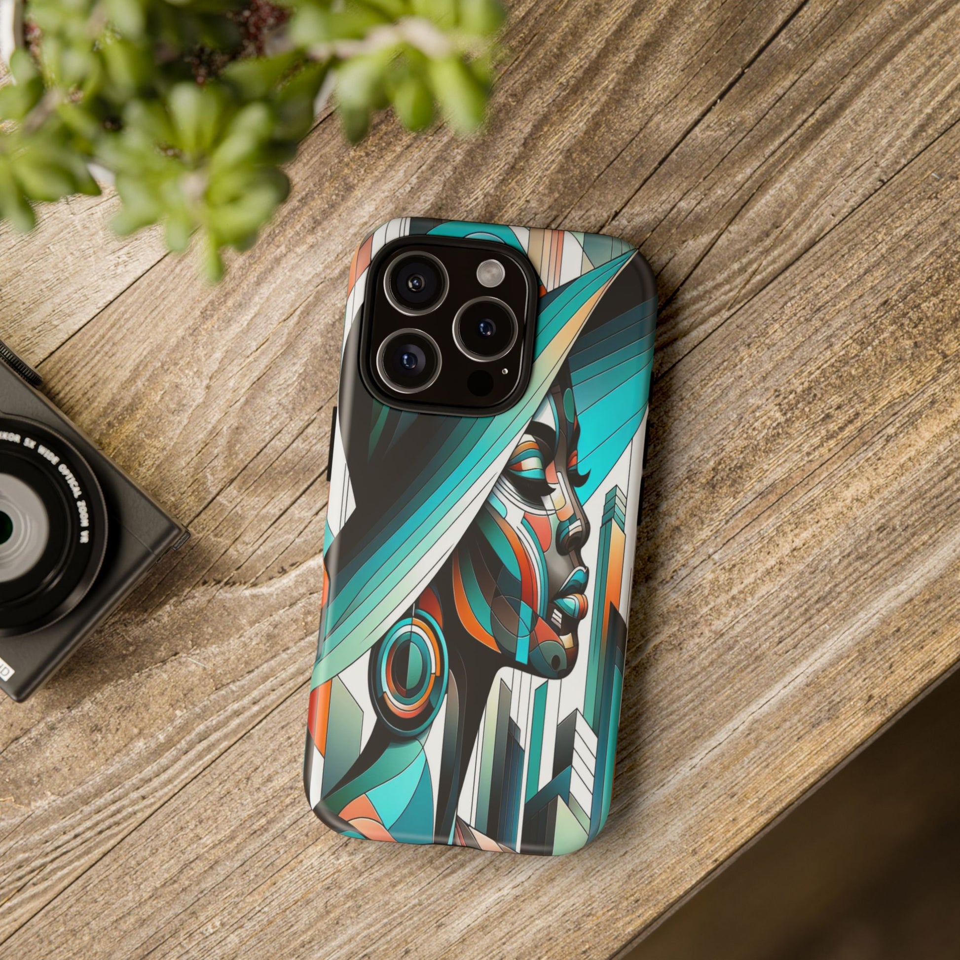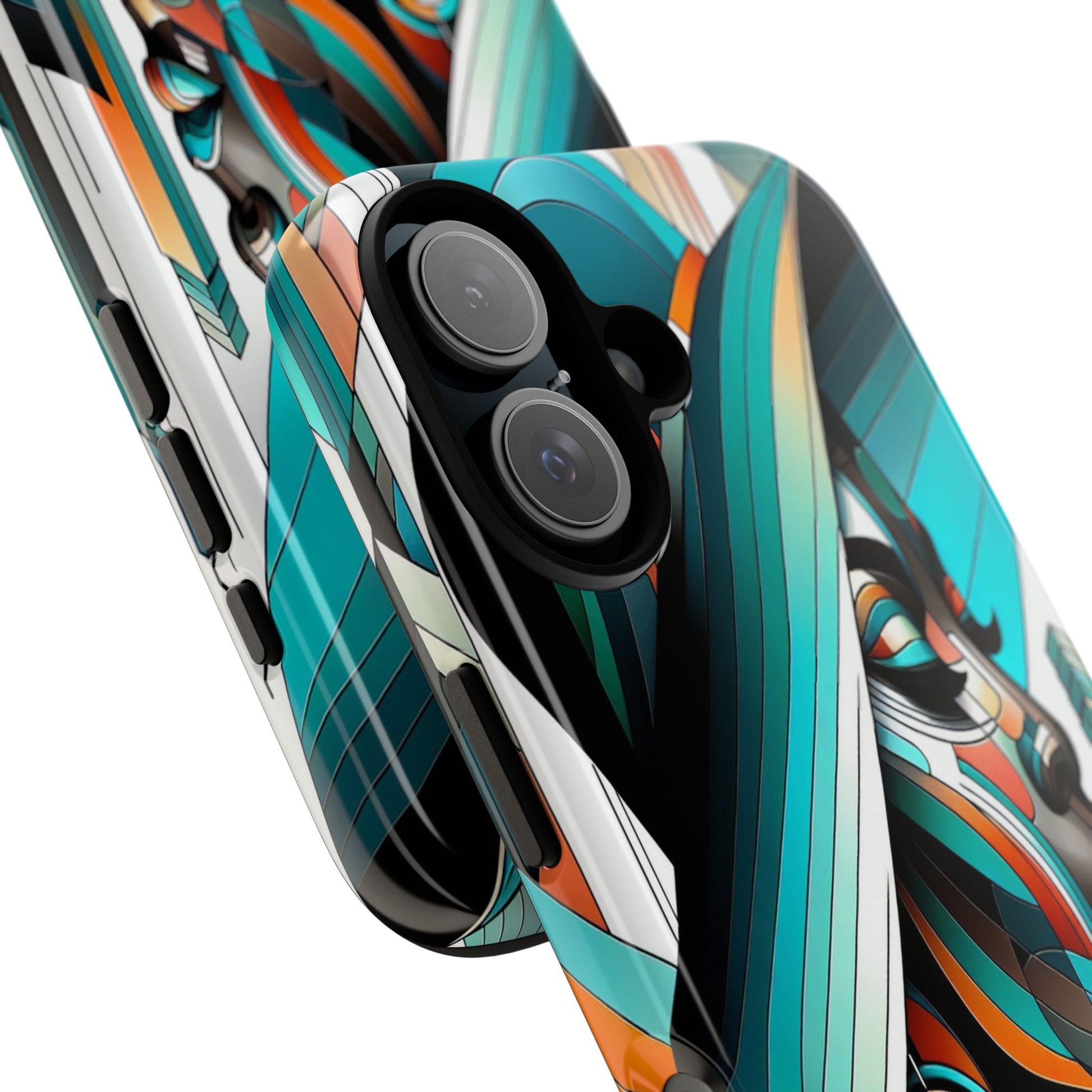 In this abstract artwork, vibrant geometric patterns form a striking portrait in profile, blending urban architecture with elegant style. The use of bold colors and dynamic lines creates a harmonious fusion of modernity and grace. iPhone, Samsung Galaxy, and Google Pixel devices with premium-quality custom protective phone cases. Every case has double layers for extra durability and protection while the clear, open ports stay out of your way when it comes to charging. The outer polycarbonate shell will resist daily impacts. Choose between matte or glossy finish and enjoy adding a unique touch to your phone with our custom protective phone cases sourced from Korea.