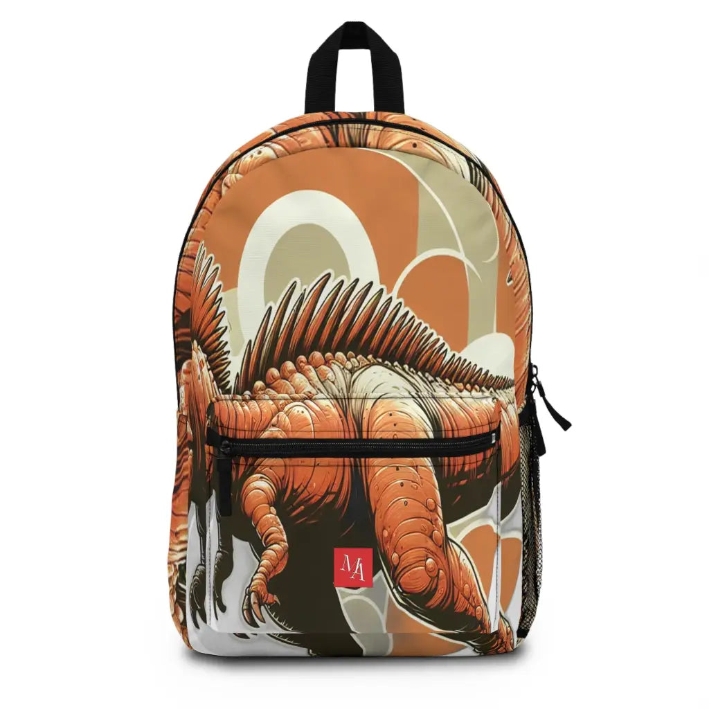 A vibrant dinosaur illustration contrasts earthy hues with bold, sharp details. Dynamic spiky textures and swirling circular patterns create a lively, retro aesthetic, bringing this fantastical creature to life with a modern twist. Introducing the ultimate backpack for fashion-forward adventurers! Our backpack boasts a striking textile design that will make a statement wherever you go. With its durable construction and spacious compartments, it is perfect for carrying all your essentials. Get ready to turn heads and stay organized with our backpack. #textiledesign #backpack #fashionforward #adventure #durable #spacious #statementpiece #organized #essentials #travel #explore