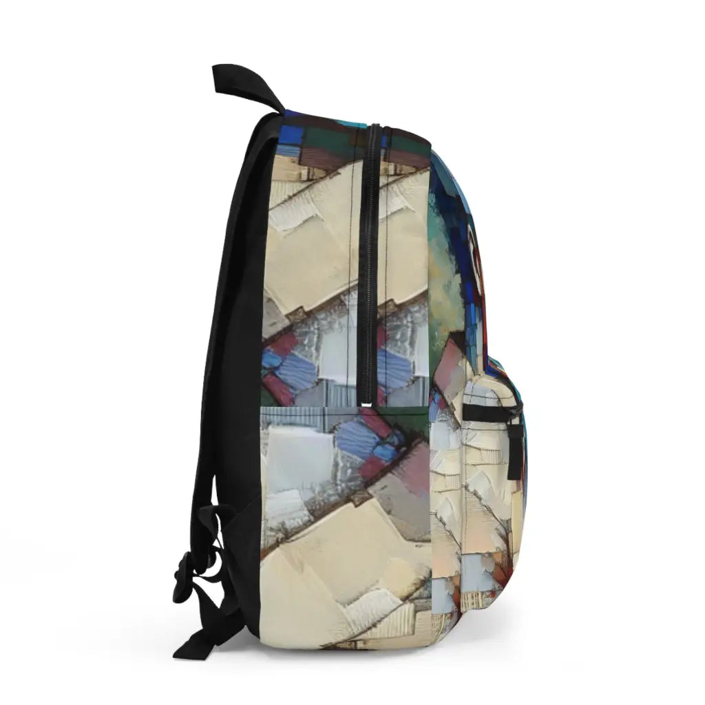 This artwork, featuring fragmented brush strokes and newsprint collage, depicts a faceless figure reading. The bold colors and abstract style create a dynamic composition, highlighting the theme of knowledge and identity in an imaginative, textured landscape. Introducing the ultimate backpack for fashion-forward adventurers! Our backpack boasts a striking textile design that will make a statement wherever you go. With its durable construction and spacious compartments, it is perfect for carrying all your essentials. Get ready to turn heads and stay organized with our backpack. #textiledesign #backpack #fashionforward #adventure #durable #spacious #statementpiece #organized #essentials #travel #explore