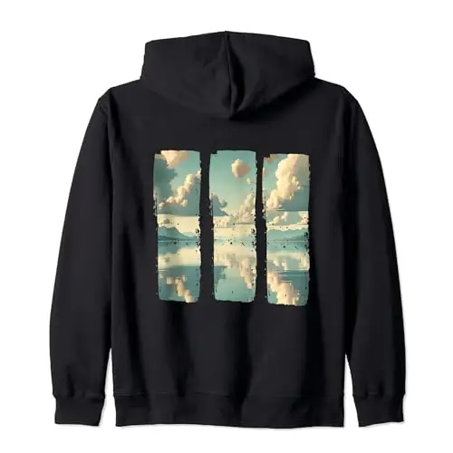 Tranquil Reflections: Serene Lake and Mountain Range Zip Hoodie