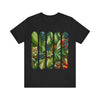 A lush tapestry of foliage bursts with vibrant gradients, blending tropical leaves in a mesmerizing interplay of greens, blues, and fiery reds. Bold, geometric patterns give a surreal touch, creating a captivating jungle of color and form.. This classic unisex jersey short sleeve tee fits like a well-loved favorite. Soft cotton and quality print make users fall in love with it over and over again. These t-shirts have-ribbed knit collars to bolster shaping. The shoulders are tapered for a better fit over time. Dual side seams hold the garment's shape for longer.