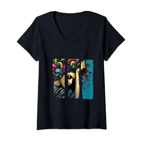 Womens Echoes of Emotion: Vibrant Colorful Contemplation V-Neck T-Shirt
