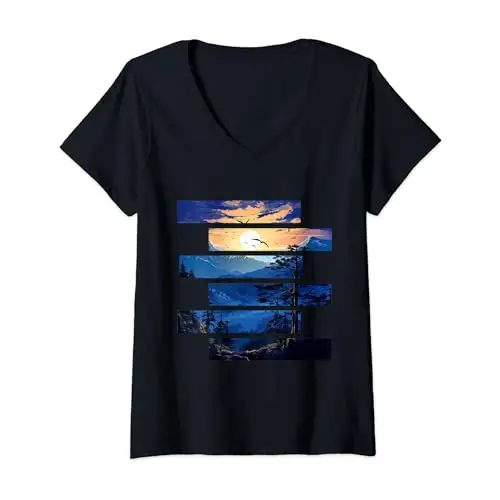 Womens Wilderness Sunrise Majesty: Gliding Raptors at Dawn V-Neck T-Shirt