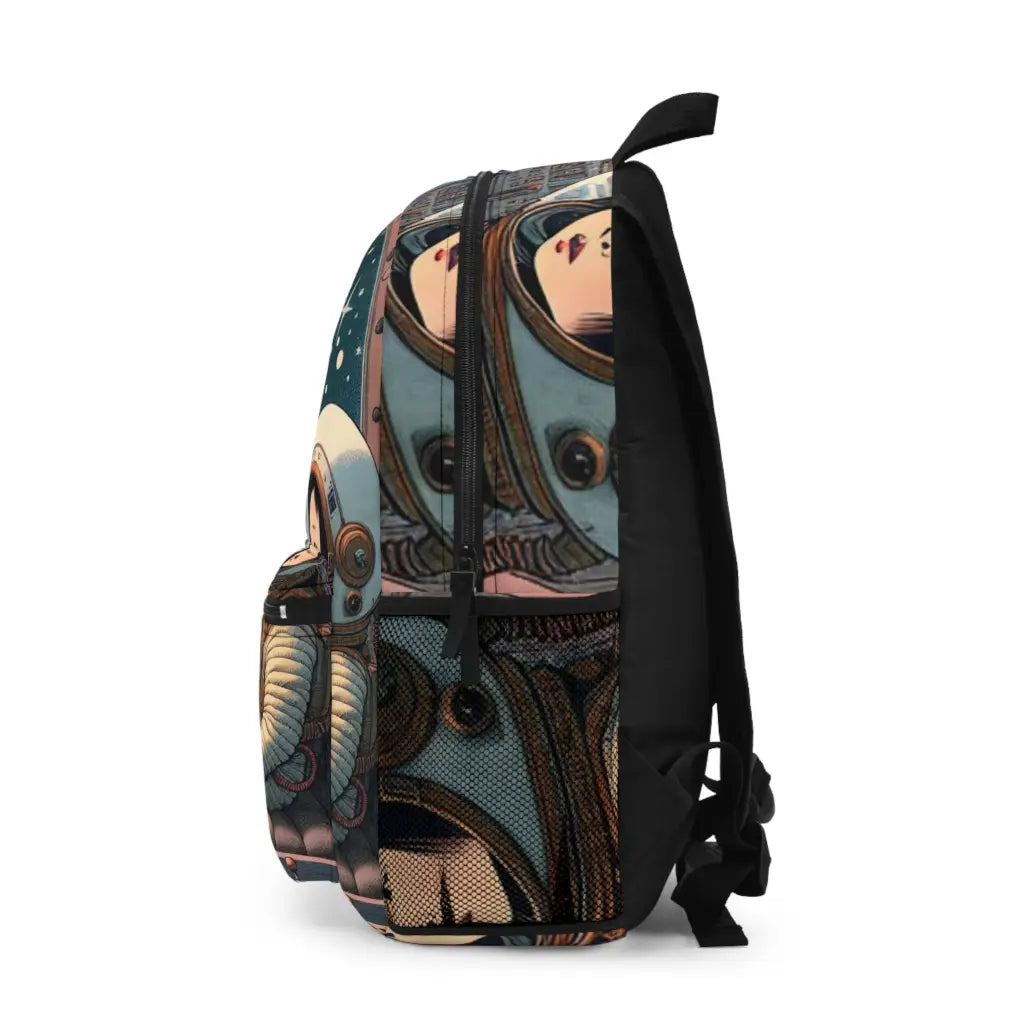 A young astronaut gleefully explores a spaceship's cockpit, surrounded by vivid stars in an endless galaxy. The blend of playful innocence and cosmic wonder creates a dreamlike scene, capturing the magic of childhood imagination and exploration. Introducing the ultimate backpack for fashion-forward adventurers! Our backpack boasts a striking textile design that will make a statement wherever you go. With its durable construction and spacious compartments, it is perfect for carrying all your essentials. Get ready to turn heads and stay organized with our backpack. #textiledesign #backpack #fashionforward #adventure #durable #spacious #statementpiece #organized #essentials #travel #explore